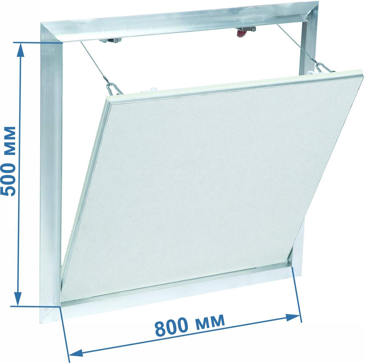 Ревізійний люк складаються з алюмінієвих профілів із або без гіпсокартону товщиною 12,5 мм та двома фіксаторами.