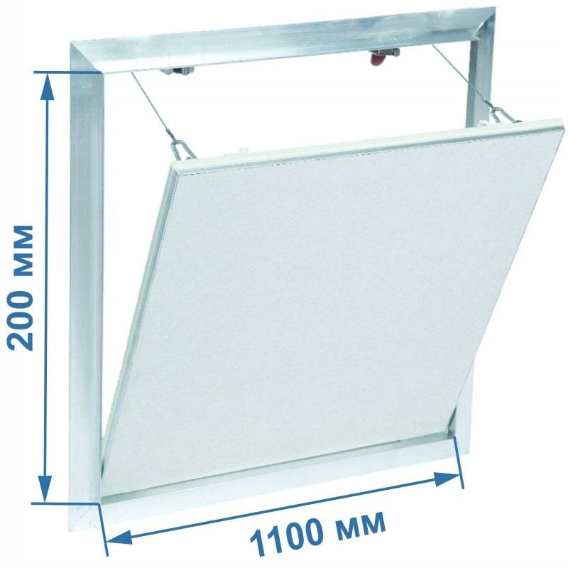Ревізійний люк складаються з алюмінієвих профілів із або без гіпсокартону товщиною 12,5 мм та двома фіксаторами.